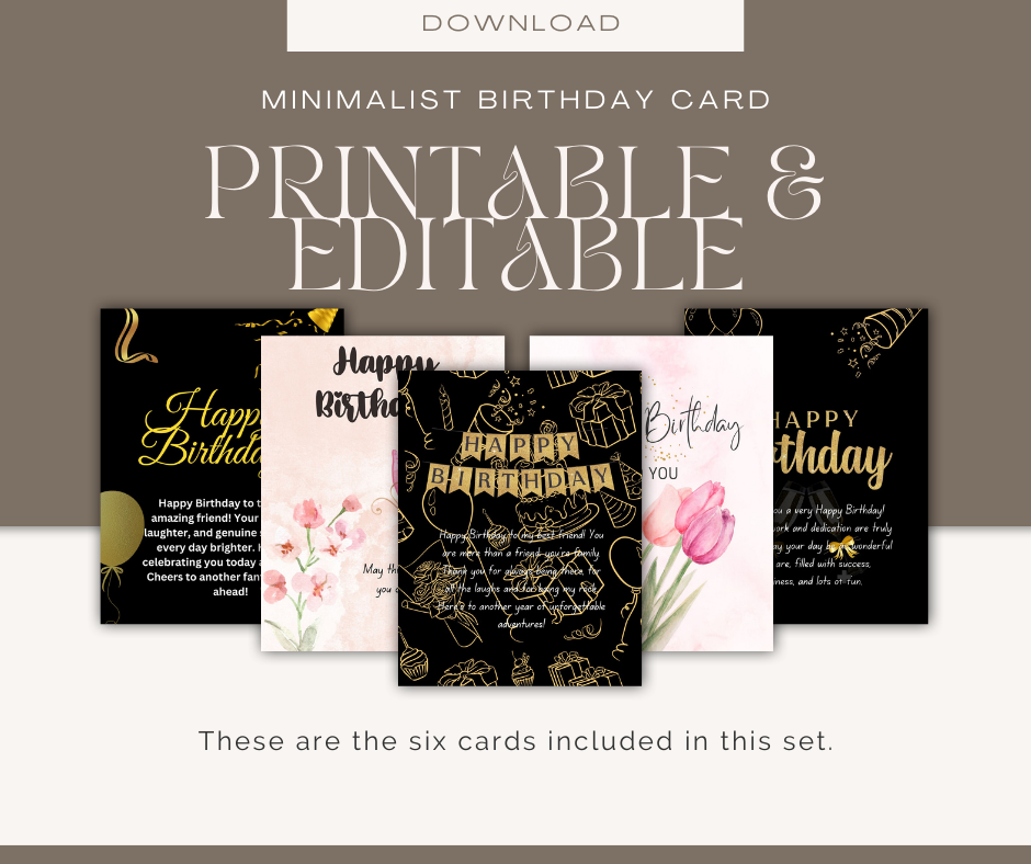 Minimalist Birthday Card | Printable & Editable | Instant Download